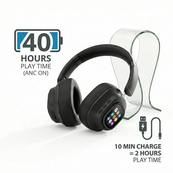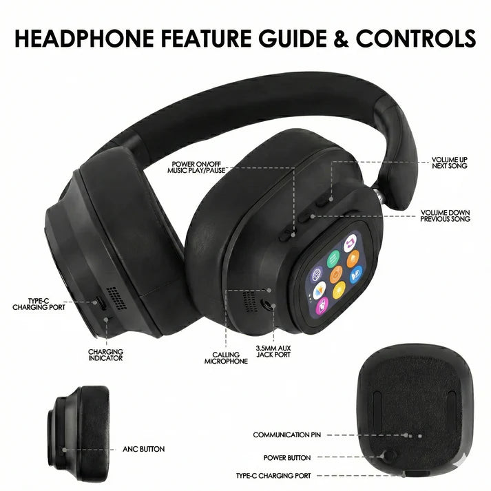 ANC Headphones with Control LED Screen Hybrid Active Noise Cancelling Headphones reduce up to 33dB of noise so you can fully immerse yourself in your music when you need to. Or, if you need ambient sound, Transparency Mode ensures you're aware of your surroundings while enjoying your music. Sensitive button controls make switching between these two modes easy. ❗❗Note: Active noise cancellation is not available with the 3.5mm audio cable; you must use Bluetooth mode for ANC functionality.